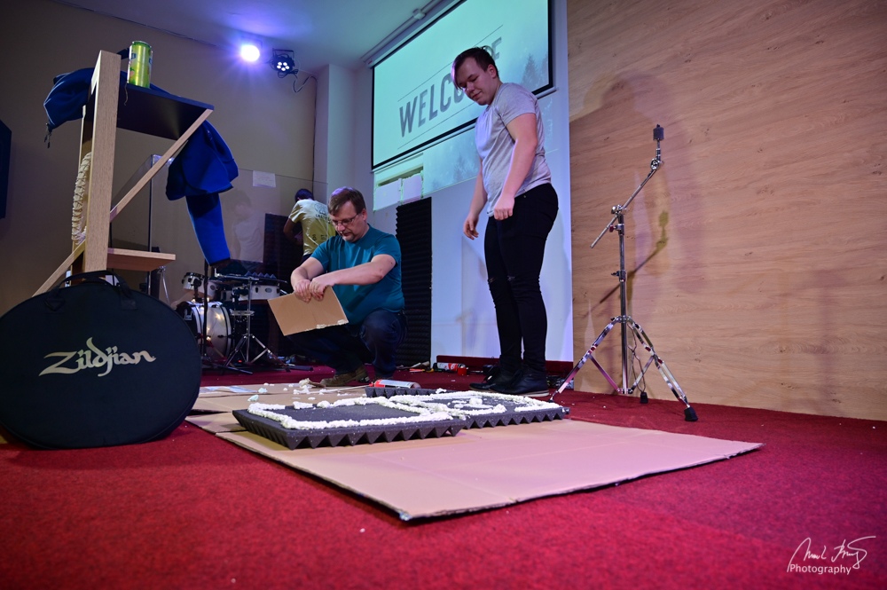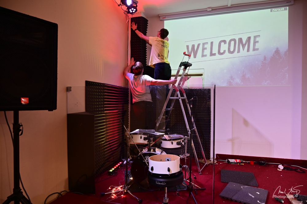 Na Zálomu pracujeme stále na zlepšeních. Pro lepší akustické vlastnosti jsme zakryli, speciálními bloky akustické pěny, prostor okolo bicí soupravy. A nejen to, podařilo se nám díky tomu zakrýt nevzhledné dveře do kavárny. Krom techniky pracujeme i na týmu chval. Věříme, že vše bude v blízké době opravdu vidět a pomůže nám to všem na bohoslužbách v soustředění se na chválu Bohu než na některé šumy a hluky, které vyrušují. Na závěr pak patří díky všem, kteří se neúnavně starají o zlepšení a udržení techniky na Zálomu.